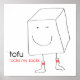 Tofu agita suas meias? Esta poster é um desenho fofo de um cubo de tofu piscando vestindo meias. Eu tentei manter esta design desenhada à mão.