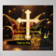 Grande cruz de ouro com chapéu de gester e coroa de ouro com design de tipografia.