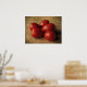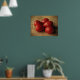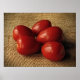 Este delicioso poster apresenta uma fotografia de vida estática de 5 amadurecidos, suculentos, tomates vermelhos, arrojados com sabor a excelente. Eles estão organizados em uma esteira marrom ouro.