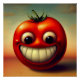 tomate antropomórfico com um grão grande, exagerado e olhos largos e expressivos.
