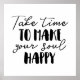 Tire Tempo Para Tornar Sua Alma Feliz, Inspiração, Negra E Branca Dizendo Tipografia *Personalize-A! Escolha a sua própria Cor de Fundo Impressa!