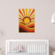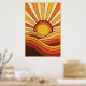 Transforme seu ambiente com nosso poster ocular dos anos 70, uma alegria homenagem ao estilo retrógrado! Mostrando um sol ousado e estilizado em matizes alegres e nostálgicos, esta trabalho de arte incorpora o espírito da discoteca e funk com seus arcos circulares e colinas ondulantes. Adicione um pedaço da história à sua casa e deixe as boas vibrações brilharem!