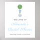 Topiária de bola de buxo aquarela em um vaso de jarra de gengibre decora o design deste sinal de boas-vindas de festa. Mostrado aqui para um chá de noiva, mas todo o texto pode ser personalizado de acordo com as suas necessidades.
