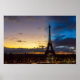 Transição noturna para o dia através da torre Eiffel no inverno de Trocadero num dia nublado - Paris, França.