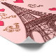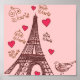 Design bonitinho com a Torre Eiffel, um passarinho, muitos corações e o trabalho "Paris" em uma fonte curventa e fofa