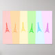 Uma fileira de Torre Eiffel forma em cores do arco-íris.