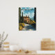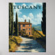 Belo poster com uma paisagem pitoresca com colinas rolantes, ciprestes e uma charmosa vila. Perfeito por enviar um pedaço de Itália para entes queridos.