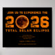 Celebrate the moment when day turns to night and bring people together under the path of totality with this striking Total Solar Eclipse 2026 invitation Poster