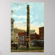A reprodução de um cartão postal antigo. Pioneer Square - o coração do velho Seattle - é o lugar para experimentar a história inicial de Seattle. Lâmpadas de rua do século virando a praça. Uma torre de totem Tlingit ao lado de uma fonte de bebendo equipada com um busto do Chefe Seattle.