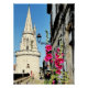 La Rochelle, França. Tour de La Lanterne, La Rochelle, França num dia ensolarado. Sol brilhando na pedra com flores coloridas e uma lâmpada antiquada.