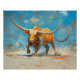 Uma pintura poderosa e dinâmica de um touro carregador deu vida com cores arrojadas e vibrantes, simbolizando força, energia e determinação.