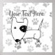 Um belo Touro Inglês Terrier, branco com manchas pretas, sobre um fundo de estampas cinza...clássico! Personalizar para seu gosto (até mesmo excluir todo o texto).