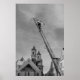 Esta adorável poster apresenta um homem, bem acima de uma cidade de inverno, numa escada que se estende em direção ao céu, trabalhando para manter a luz da rua que flutua por fio acima da estrada. À distância estão os dois montes da igreja, juntamente com edifícios e casas da Europa de 1968. Um presente perfeito para o amante da fotografia de vintage em sua vida.