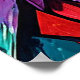 Trabalho de arte de águia vibrante e colorida. A cabeça da águia é representada num estilo impressionante com camadas de negrito, formas geométricas e cores brilhantes, incluindo vermelhos, azuis, verdes e amarelos. As penas são estilizadas com detalhamento intrincado, mostrando uma variedade de tons que criam profundidade e movimento. O fundo consiste em padrões geométricos coloridos semelhantes que melhoram a composição dinâmica global. O olho piercing da águia adiciona um ponto focal intenso à peça, transmitindo força e majestade.