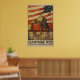 Um poster da Primeira Guerra Mundial mostrando homens no trabalho em um estaleiro, debaixo de uma bandeira americana criada por Hibberd Van Buren Kline.