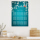 12 Modelos de Poster de Gráfico de Casamento de Casamento Mesa - Letras Elegantes de Script e Palavras de String Vintage com Fundo de Sparkle Azul Turquesa. Um Design perfeito para o seu grande dia. Todo estilo de texto, cores, tamanhos podem ser modificados para ajustado das suas necessidades.