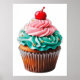 Cupcake de aniversário bonito com cereja no topo da área de ilustração do deserto de pastelaria. Download e poster
