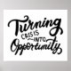 Este design apresenta uma mensagem para se focar no positivo e transformar a crise em oportunidade.