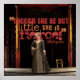 Esta colorida apresentação da célebre citação de Shakespeare: "Embora ela seja apenas pequena, ela é feroz!" do Sonho de Uma Noite de Verão completo, com uma mulher renascentista parada em um hall de Elizabetano, é uma obra de foto digital do ator australiano Sally McLean