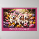 Este poster bonitinho apresenta três cachorros de varejo Ouro em um campo colorido de flores coloridas. Ele apresenta uma mensagem inspiradora que é personalizável. Você pode alterar o texto para sua própria mensagem ou nome da empresa, se preferir.