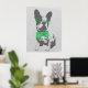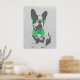 Um belo e engraçado cão-teta francês, com arco e óculos verdes brilhantes. preto, cinza, filhote de cachorro, vintage, antigo grunge antigo, folha de fundo de cinza angustiada, neon, verde vibrante, cinzas, preto, bonito, divertido, brilhante, risada, moda. Cachorro, animal, cachorrinho, raça de cachorro, animal, amante de cachorro. Personalize-o com seu nome de palavra ou frase favorita clicando no botão personalizar e adicionando texto, escolha a fonte e a cor do texto. Impressão de imagem