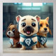 Três filhotes bonitos celebrando um aniversário e posando para a câmera lindos