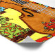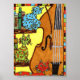 Decorem suas paredes em estilo com este único e colorido mini poster de arte popular. Nesta trabalho de arte engraçada e caprichosa, esses três gatos coloridos estão sentados no chão e nas prateleiras à volta de um violino de baixo, que ocupa um canto inteiro da sala devido ao seu grande tamanho. A cena inteira está cercada por uma borda multicolorida correspondente. Este mini poster faria um presente de excelente para músicos, professores de música ou amantes de música que também amam gatos.