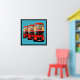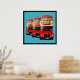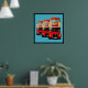 design de impressão usando uma imagem fotográfica do icônico barramento londrino, duplicado três vezes em diferentes tamanhos, contra um fundo cor de turquesa. Esta design deriva de uma fotografia tirada em 1995 no bairro londrino de Stoke Newington. Apresenta o ônibus 73, que é uma das rotas de ônibus mais famosas de Londres. Este modelo de ônibus já não está em serviço, já que foi aposentado em 2004, após muitas décadas de transporte público para milhões de pessoas. Esta impressão ousada com um retrorreflector oferece ao comprador uma recordação única de tempos passados em uma das maiores cidades do mundo.
