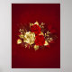 A composição de duas rosas vermelhas pintadas artisticamente e uma rosa ouro, decorada com ouro, folhas de joias sobre fundo texturizado.