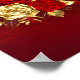 A composição de duas rosas vermelhas pintadas artisticamente e uma rosa ouro, decorada com ouro, folhas de joias sobre fundo texturizado.