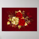 A composição de duas rosas vermelhas pintadas artisticamente e uma rosa ouro, decorada com ouro, folhas de joias sobre fundo texturizado.