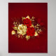 A composição de duas rosas vermelhas pintadas artisticamente e uma rosa ouro, decorada com ouro, folhas de joias sobre fundo texturizado.