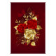 A composição de duas rosas vermelhas pintadas artisticamente e uma rosa ouro, decorada com ouro, folhas de joias sobre fundo texturizado.