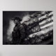 Este poderoso pôster de arte de parede em preto e branco homenageia a força, coragem e dedicação das mulheres na aplicação da lei. Apresenta uma policial feminina contra uma bandeira americana fluida que se materializa e emana de trás dela em efeitos artísticos cinematográficos, semelhantes a tinta e fumaça. Projetado para fazer uma declaração significativa em escritórios, academias, delegacias ou espaços residenciais, esta impressão de pôster é uma peça respeitosa e atemporal de decoração de aplicação da lei.