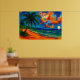 Bathed in warm hues of sunset gold, this tranquil seascape invites the viewer into a world where time slows and tides whisper. Silhouetted palms lean gently into the breeze, framing a horizon that melts into dreamy orange and lavender skies. Gentle ripples shimmer with the last light of day, capturing the quiet magic of coastal peace.