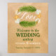 Este sinal de boas-vindas é perfeito para qualquer casal planejando uma celebração romântica de casamento na praia. A design apresenta uma coroa tropical de palmeiras, conchas e estrelas-do-mar sobre um fundo arenoso com uma redação coordenada por cores. O simples design pode ser personalizado para se adequar ao seu evento especial e será o perfeito poster de boas-vindas para qualquer festa temática tropical, incluindo chás de panela, noivados, chás de casamento, festas de aniversário e muito, muito mais.
