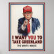 Show your bold patriotic humor with this eye-catching satirical poster featuring a powerful portrait of Donald Trump in his signature red MAGA hat, pointing directly at you with the iconic message: "I WANT YOU TO TAKE GREENLAND" and "MAKE AMERICA GREENLAND GREAT AGAIN". Inspired by the famous Uncle Sam recruitment poster, this fun, provocative design blends classic American iconography with modern political meme culture. Perfect for Trump supporters, political collectors, meme lovers, or anyone who appreciates witty, edgy wall art. High-resolution print-ready artwork that makes a statement in any room or as a unique gift.