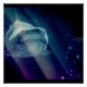 Um belo design místico mostrando um tubarão com aspecto fantasma no oceano azul profundo.