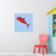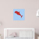 Um desenho de tubarão vermelho em listras azuis. Um design de animação animal divertido.