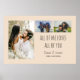 Crie um presente sincero com este pôster de colagem de fotos românticas com a citação adorada "Tudo em Mim Ama Tudo em Você". Este design personalizável permite que você exiba suas memórias favoritas em um belo layout, completo com nomes e locais personalizados. Perfeito para celebrar o amor, aniversários, casamentos ou Dia dos Namorados, este pôster é um presente significativo para casais ou uma adição especial à sua própria casa. O design limpo e elegante fica lindo em quartos, salas de estar ou qualquer espaço onde você queira exibir sua história de amor.
