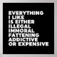 Tudo O Que Eu Gosto É Ou Ilegal, Imoral, Engorda, Viciante Ou Uma Excessiva Citação Preta E Branca Dizendo Tipografia Engraçada