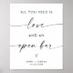 Este lindo Tudo que você precisa é de amor e um sinal de Bar aberto apresenta uma elegância minimalista maravilhosamente moderna para mostrar no seu casamento ou evento especial. Edite facilmente a maioria dos textos para corresponder ao seu estilo. As cores de texto e de fundo são totalmente editáveis —> clique no botão "Editar usando a ferramenta Design" para editar!