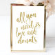 Uma elegante placa de casamento de ponta, mostra o texto "Tudo que você precisa é amor e rosquinhas" em uma letra extrovertida, a textura brilhante acrescenta um toque festivo e glamouroso. A cor de fundo pode ser personalizada de acordo com as suas necessidades e preferências, contacte-me se tiver alguma solicitação especial.