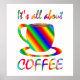Os amantes do café vão gostar desta design colorida com a xícara de café e as palavras que é tudo sobre café.