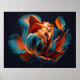 Poster Tulipa Azul e Laranja num Fundo Preto Negrito Negr