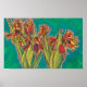 Poster com trabalho de arte floral colorido, tulipas amarelas-vermelhas com folhas verdes sobre fundo azul-turquesa. Pastéis suaves e caneta de tinta em papel de artesanato, desenho de esboços salva-vidas, 2021 © Clipso-Callipso/Julia Khoroshikh www.juliakhoroshikh.art #modernfloral #tulips #expressionismo #tulipsart #redtulippainting #dyingflower #floralsketch #floralart #floralprint #posters