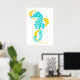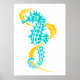 Azul-turquesa-marinho (aqua), amarelo e algas-marinhas sobre impressão de poster.