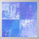 Um design abstrato com formas circulares dispersas em uma paleta de cor roxa e turquesa.