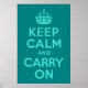 Turquesa e Teal "Mantenha a calma e continue" versão moderna do clássico poster.