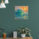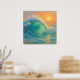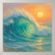 Artwork of a turquoise wave in a pastel painting style with a sun in the background. This art captures the precise moment a towering wave crests and curls into a turquoise tunnel, all bathed in the fiery glow of the setting or rising sun. It's a vibrant piece that brings the majesty of the open sea into your home. The sea glows in brilliant shades of teal, while sunlight melts across the surface in soft amber hues, a harmony of movement and light. This artwork is ideal for a living room, a surfer's inspired space, a dynamic office, or any area that needs a burst of color. If you are captivated by the raw beauty of the sea and crave artwork with saturated, contrasting color, this is a must-have. This art can be customized, printed, and or downloaded.